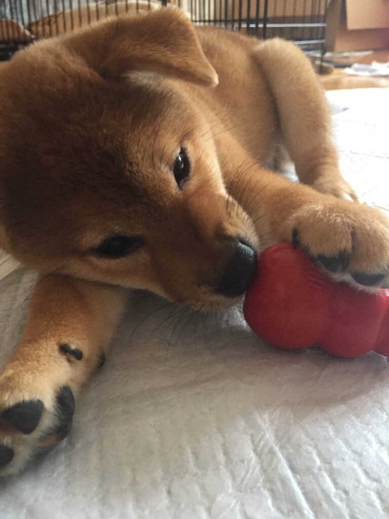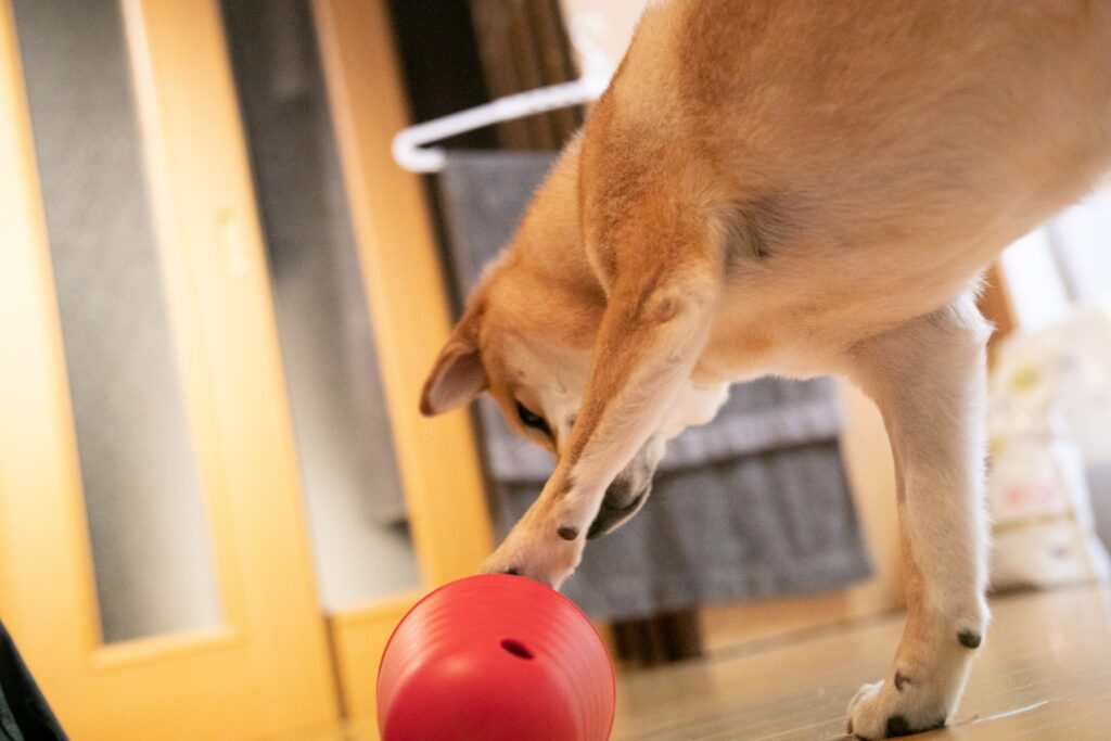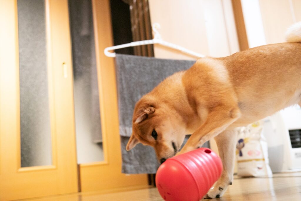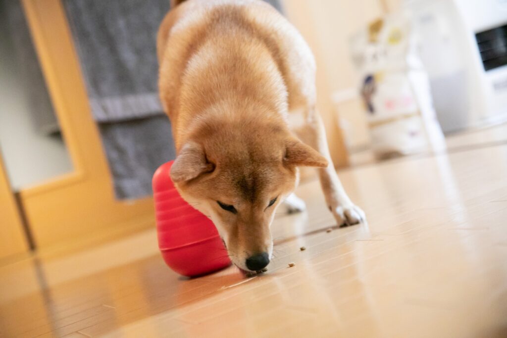 例えば、犬用知育トイにフードを入れて、転がしながら食べるタイプのものがあります。
