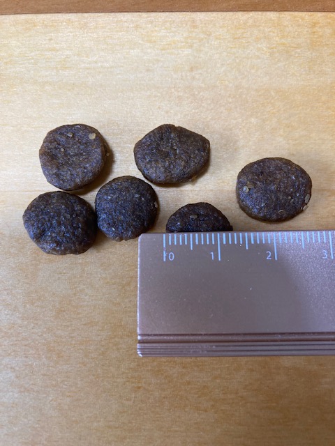 粒はやや大きめで、しっかり噛んで食べるタイプの犬に向いています。